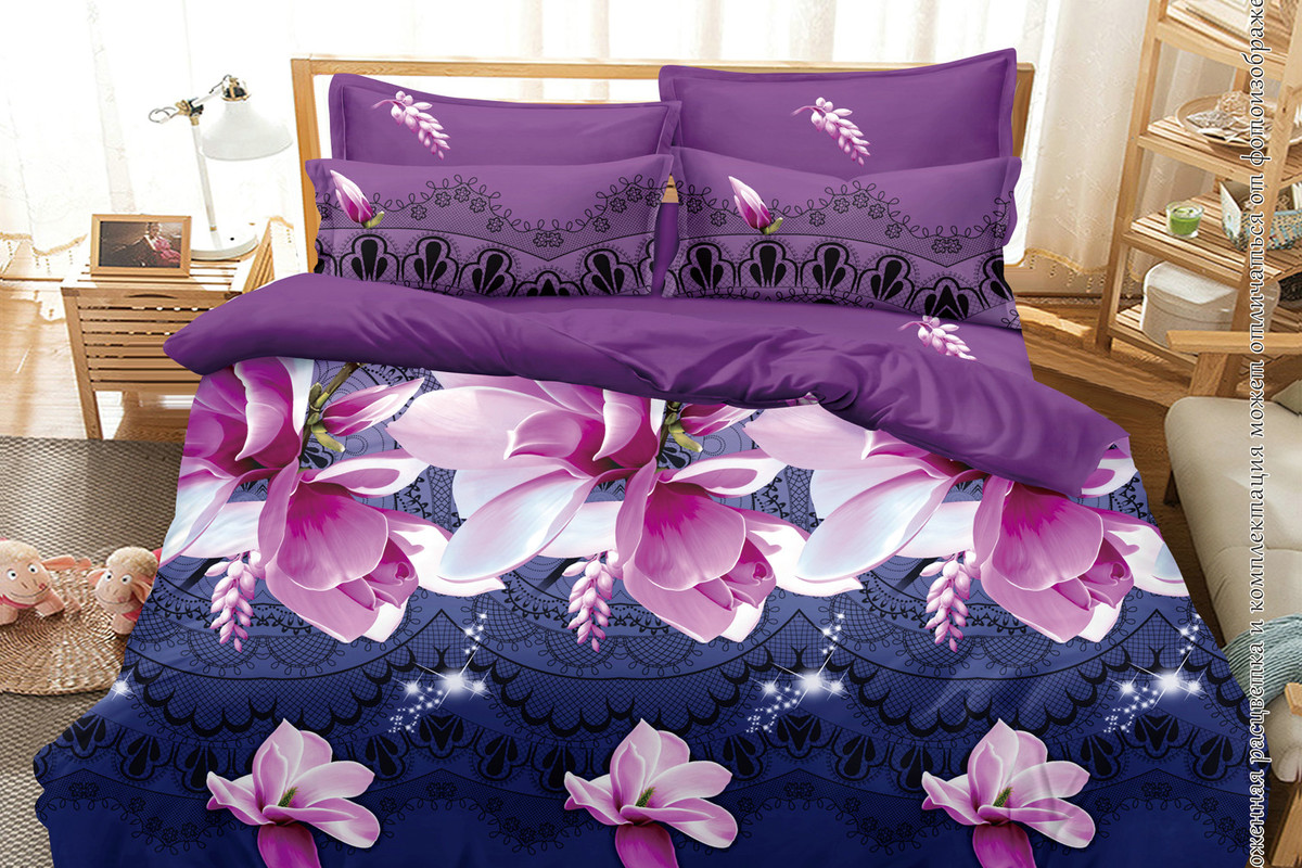Комплект выполнен из одной из популярнейших тканей - полисатина, успешно потеснившей своего сатинового предшественника. По ощущению полисатин мягкий, нежный, по-другому называют искусственным шелком. Визуально имеет яркие расцветки, имитирующие эффект 3Д рисунка, изображения. Благодаря специально разработанной технологии нанесения узоров обеспечивается высокое качество и визуальная естественность белья. Полисатиновый комплект оживит атмосферу, делая ее яркой, сочной. Поверхность отличается шелковистостью, приятным сиянием, служит длительное время, не выцветает, не линяет. Белье рассчитано на активное использование и многократные стирки. Прочная ткань имеет двойную скрутку волокон, за счет которой полотно становится плотным, прочным. Другое свойство белья — оно неприхотливо в уходе, легко отстирывается. Поскольку оно не мнется, отпадает необходимость в глажке